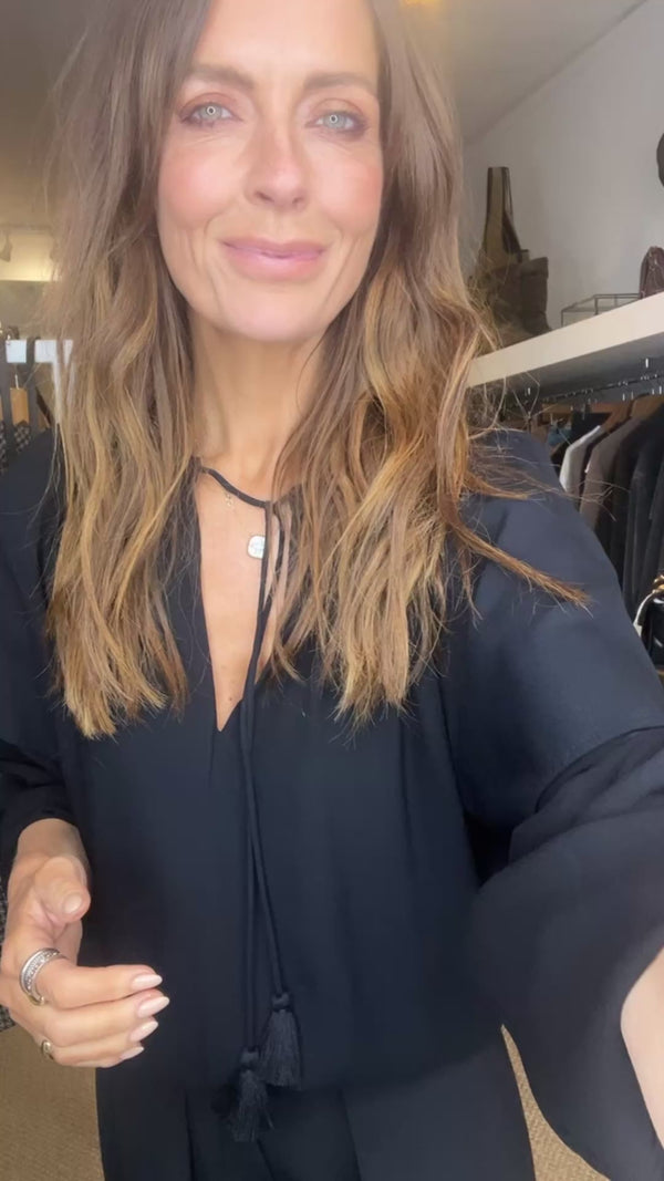 With its voile sleeves and slit neckline, the Dylan blouse plays on contrasting materials for a look that is both understated and sophisticated. An ideal piece for both day and evening wear.